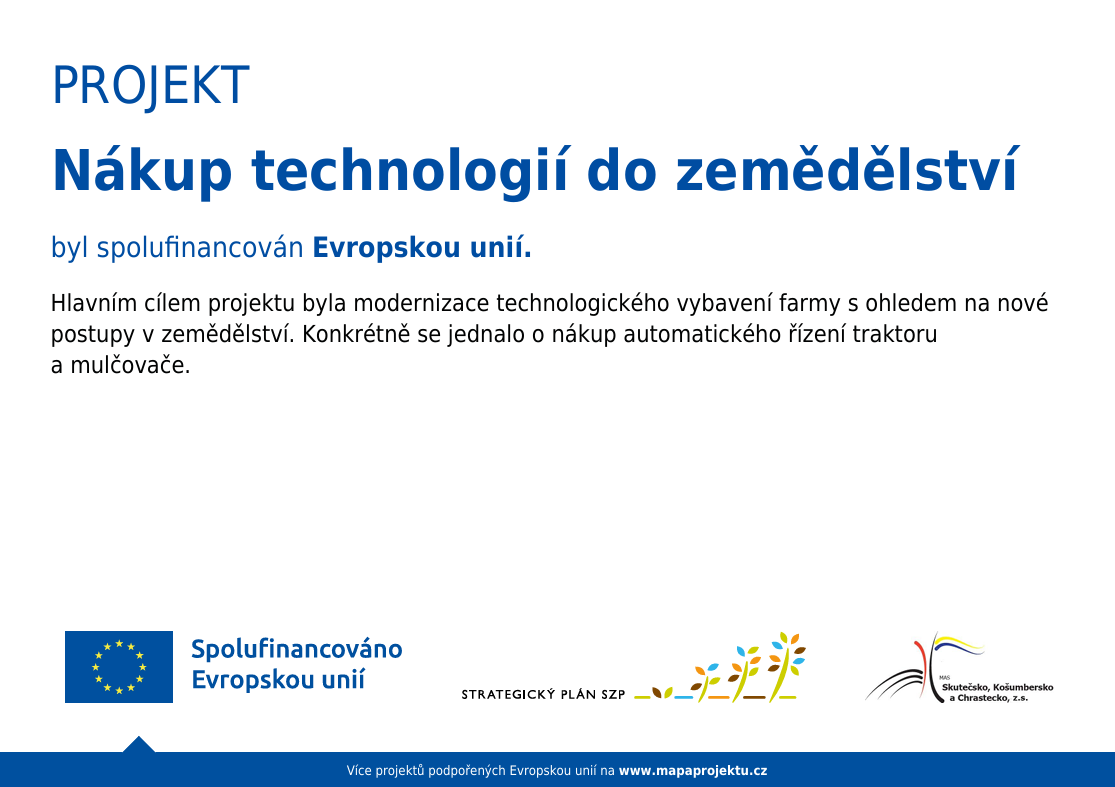 Akce byla též příležitostí pro představení veřejnosti naše nové technologie – mulčovač a navigaci do traktoru, které jsme si mohli pořídit díky podpoře a pomoci ze strany MAS Skutečsko, Košumbersko a Chrastecko, z.s. v rámci 1. výzvy SP SZP. Obě technologie patří k trendům současného zemědělství. Mulčovač, který dokáže precizně rozsekat posklizňové zbytky a ty pak rovnoměrně rozprostřít, zaujal hlavně starší generaci. Navigace do traktoru zaujala naopak tu mladší . Otázky na fungování a možnosti těchto zařízení nebraly konce a věřím, že jsme v mnohých dětem vzbudili zájem o práci v zemědělství.